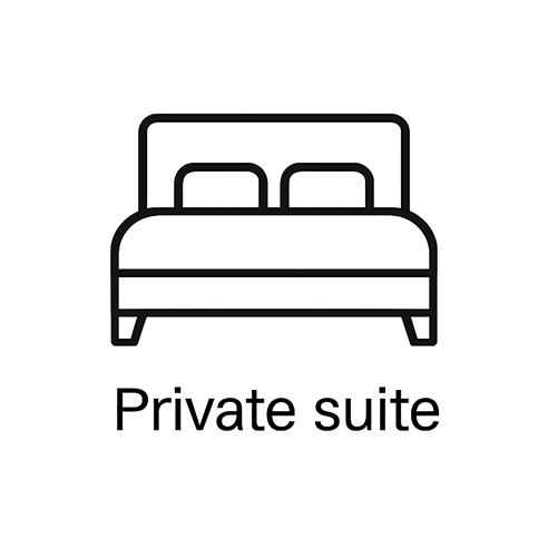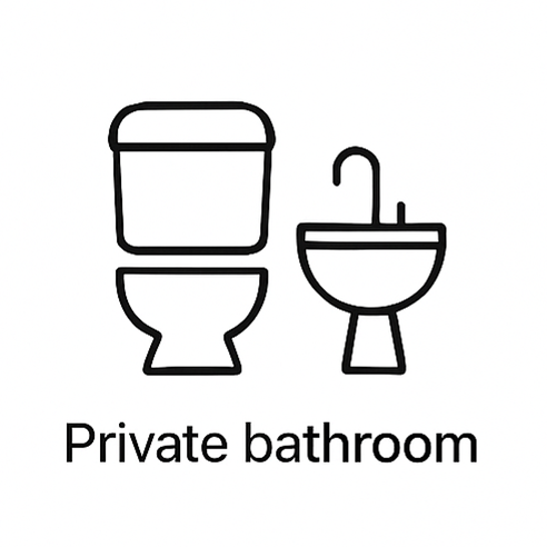 Located on the ground floor, retreat to a fully soundproof 20 m² room with blackout curtains, acting as a sanctuary from life’s noise. Unwind in front of a conventionally positioned flat-screen TV adjacent to the bed, effortlessly navigating Netflix and other streaming services, all supported by high-speed Wi-Fi.